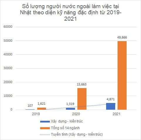 For the specific skills program alone, the number of foreigners working in Japan has increased dramatically from 2019 to 2021 with nearly 50,000 employees. In particular, the architecture – construction sector is also on the rise, nearly 5,000 people in 2021 from more than 100 workers in the same industry in 2019.